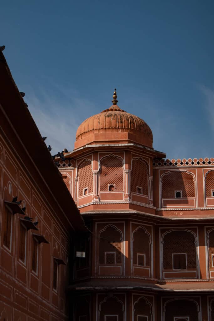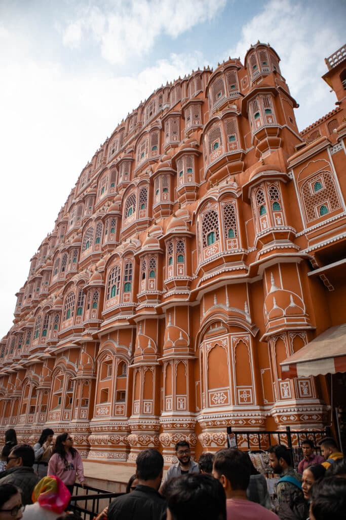 • Le Hawa Mahal (Palais des Vents) : C’est l’emblème de Jaipur avec sa façade en nid d’abeille et ses 953 petites fenêtres. Il permettait aux femmes du harem d’observer la rue sans être vues.
