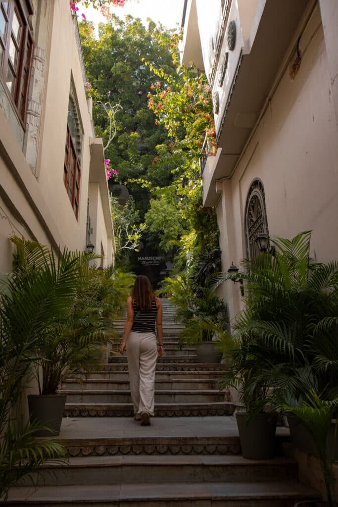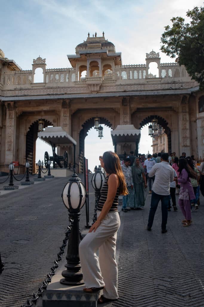 💡 Pour vivre l’expérience palais jusqu’au bout, je vous conseille d’aller manger et boire un verre dans l’une des deux ailes du City Palace occupées par des hôtels de luxe aujourd’hui : le Taj Fateh Prakash Palace et le Shiv Niwas Palace. Pas besoin d’y loger (les chambres sont hors de prix) pour y accéder ! Vous pouvez simplement y réserver une table. Comme les prix sont en roupies, l’addition reste très correcte pour nous, et le cadre est somptueux.