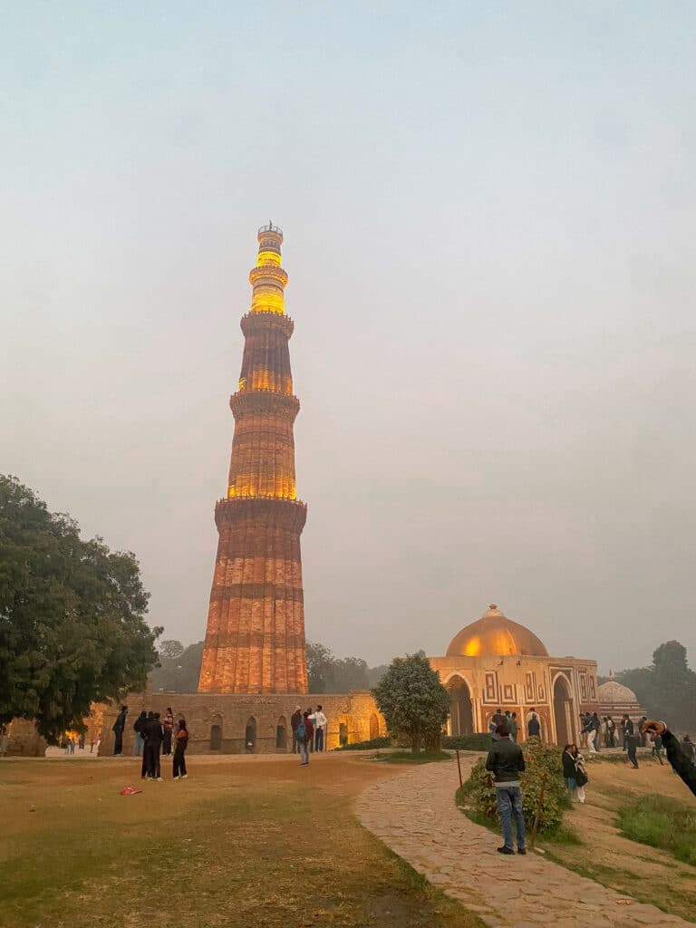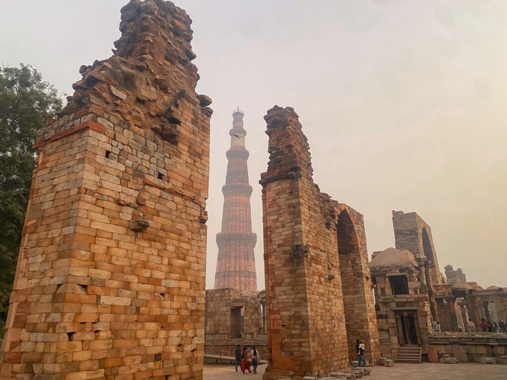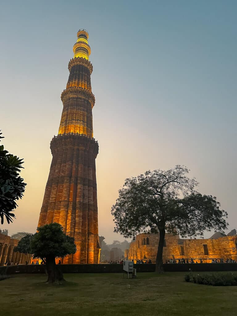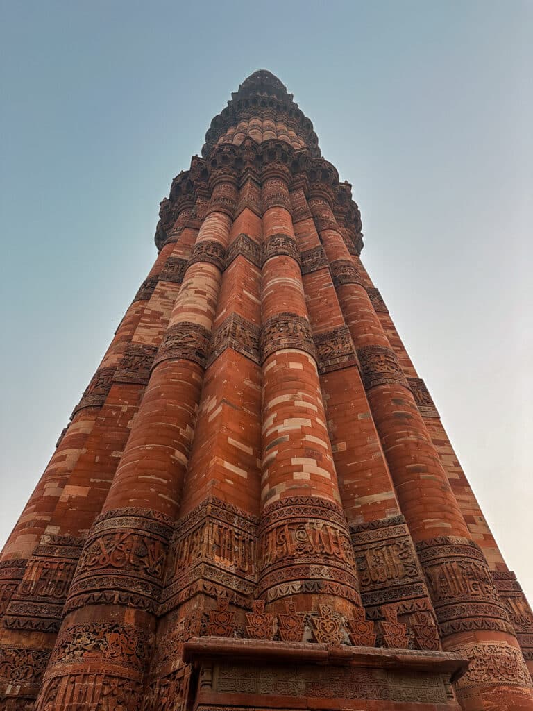 C’est le minaret en brique le plus haut du monde (73 mètres !), construit dès 1192. Le complexe est magnifique, avec des ruines de temples et des piliers sculptés très fins. C’est un site très différent de l’architecture moghole vue à Agra ou Jaipur. Une très belle dernière image de l’Inde avant de partir.