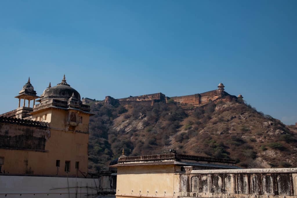 Lors de notre passage, il y avait tellement de touristes indiens à Jaipur que nous avons rebroussé chemin en allant au fort de Nahargarh. On était bloqué sur la route sans avancer depuis plus de 30 minutes déjàdonc on s’est arrêtés sur le bord de la route pour admirer la vue avant de faire demi-tour.